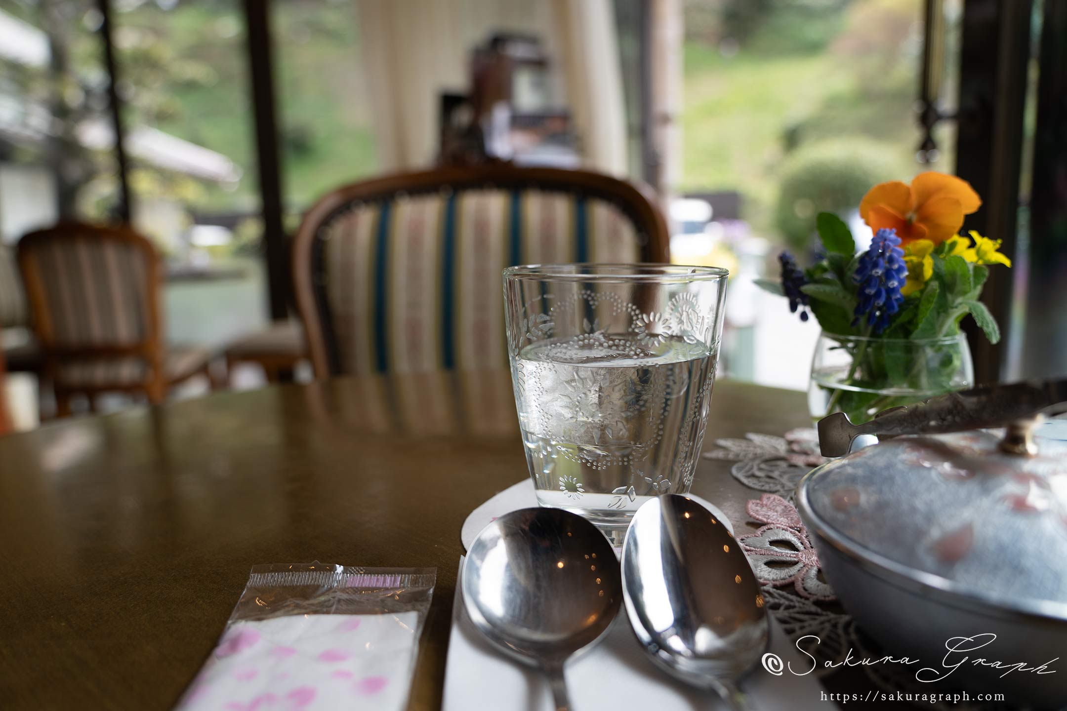 江戸時代の古民家を改修したという店内は使い込まれたテーブルと椅子が並び、レトロな空間になっている。手入れが行き届いていて心地よい。カレーライスをいただき、ゆっくりと桜を撮影させてもらうことにした。