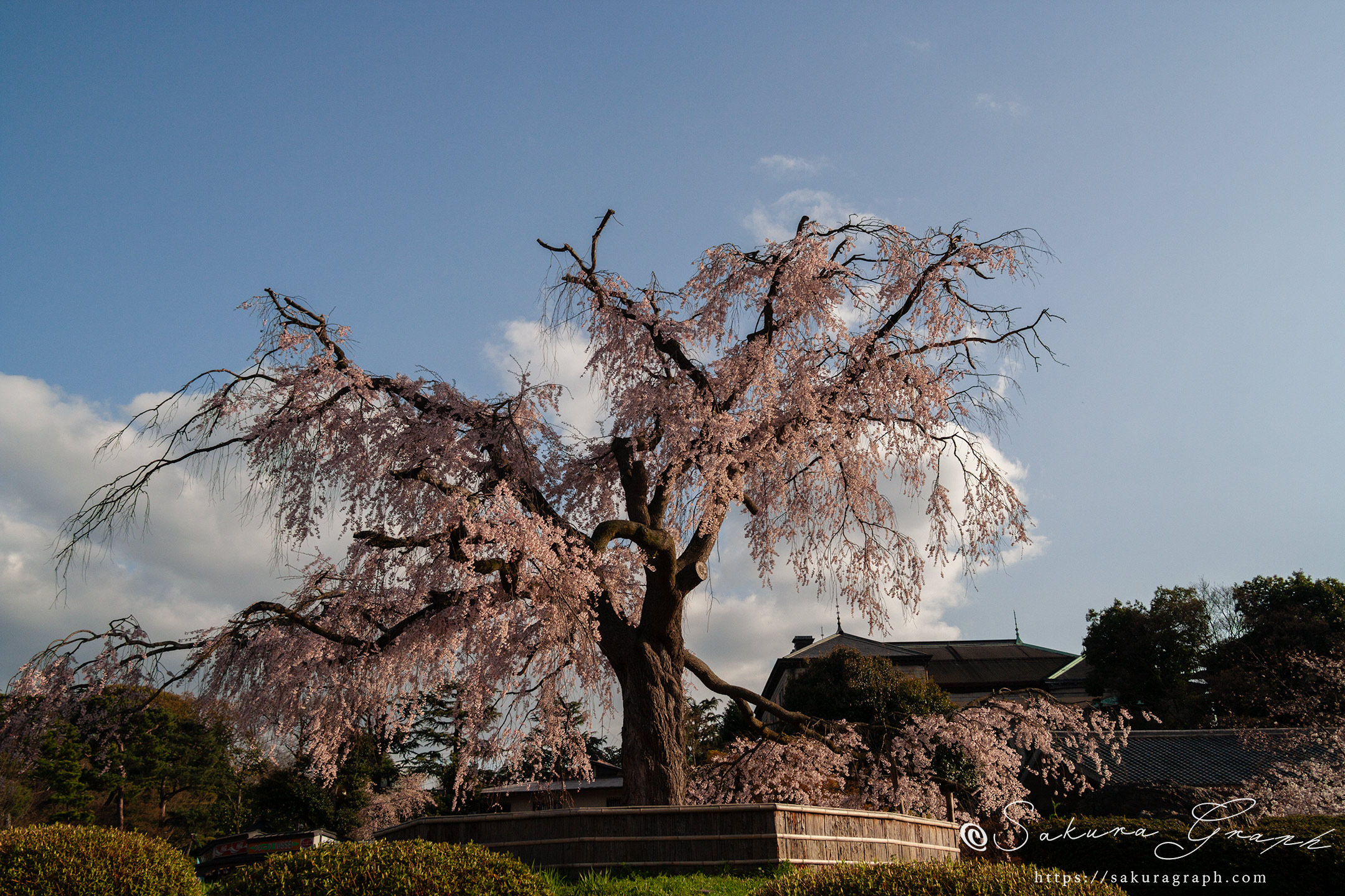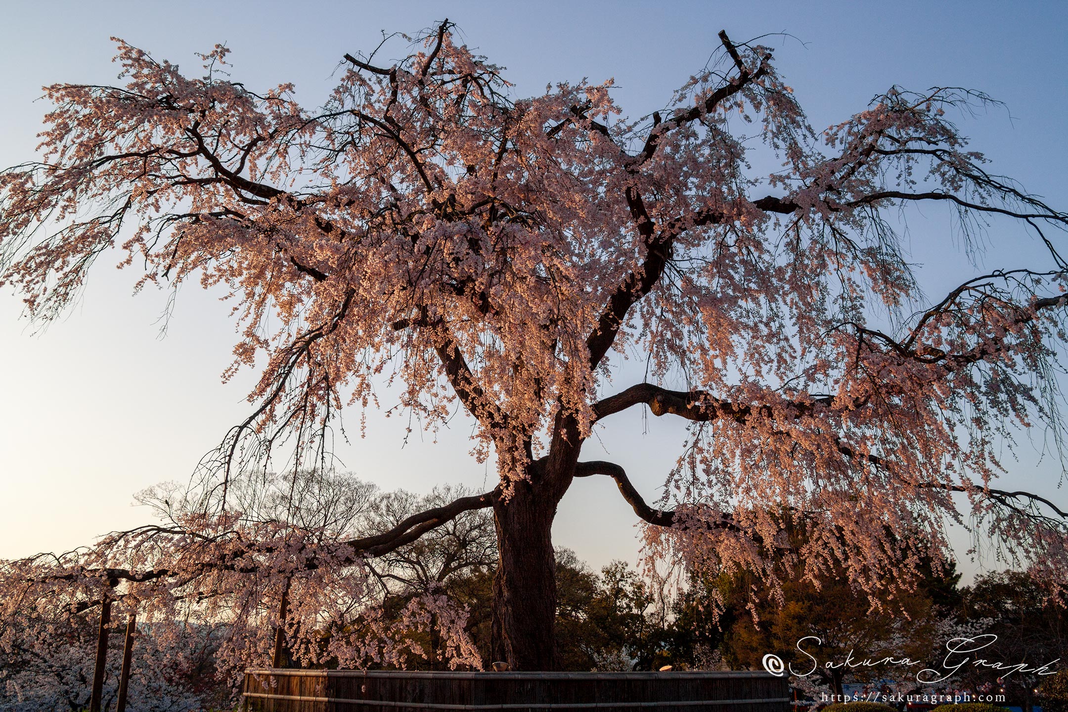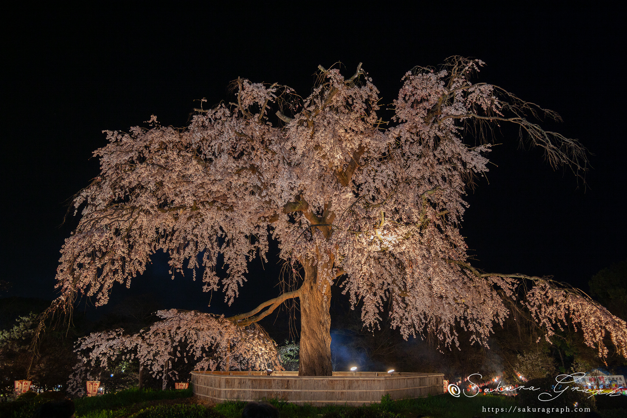 学生時代を京都で過ごした筆者にとって、初めて一本桜を意識したのはここ円山公園の祇園しだれ桜だった。公園の真ん中に位置し、一際目立つ舞台の上で優美に枝を広げる姿はまさしく一本桜と呼ぶにふさわしく、初めて見た時のことをよく覚えている。滝桜も神代桜も知らなかった当時は、この桜こそが日本一の一本桜だろうとさえ思っていたが、のちにさまざまな名木の存在を知ることになり、やがて一本桜巡りにハマっていった。いわばこの桜は筆者にとって一本桜の世界への入り口となった桜だった。